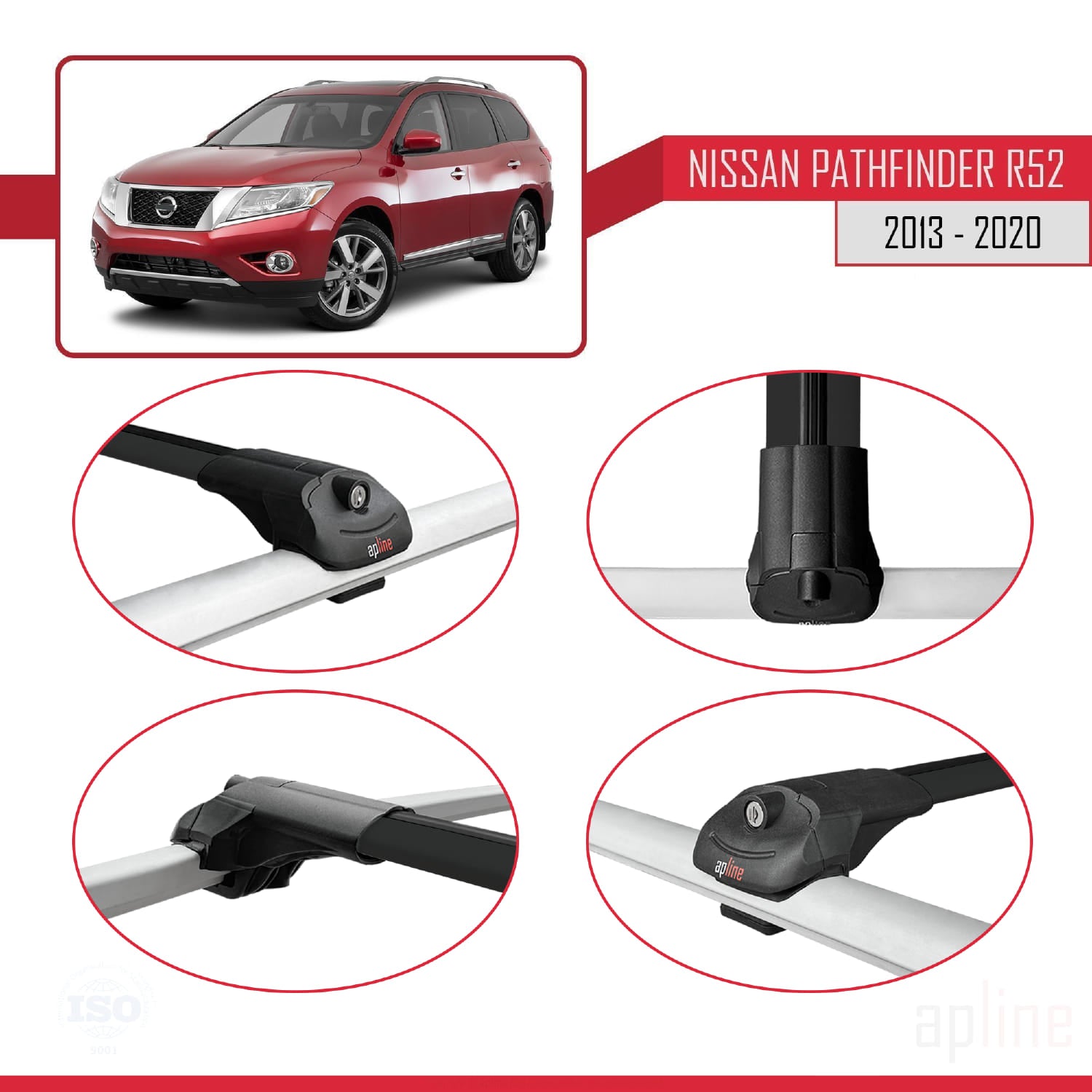 Compatible avec Nissan Pathfinder 4 (R52) 2013-2020 ACE-1 Barres de Toit Railing Porte-Bagages de Voiture Noir Aluminium 3 Barres