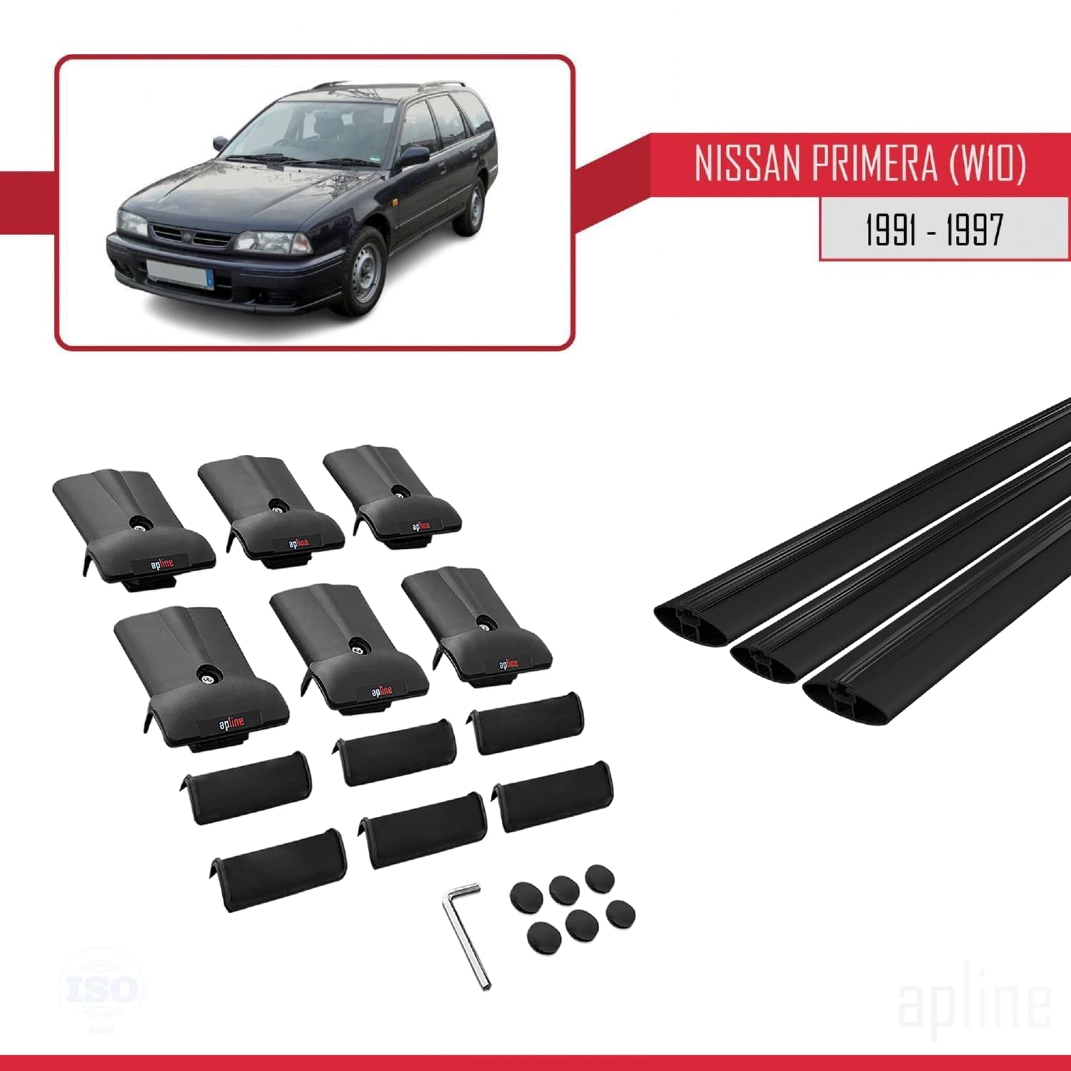 Compatible avec Nissan Primera (W10) Traveller 1991-1997 FLY Model Barres de Toit Railing Porte-Bagages de Voiture Noir Aluminium 3 Barres