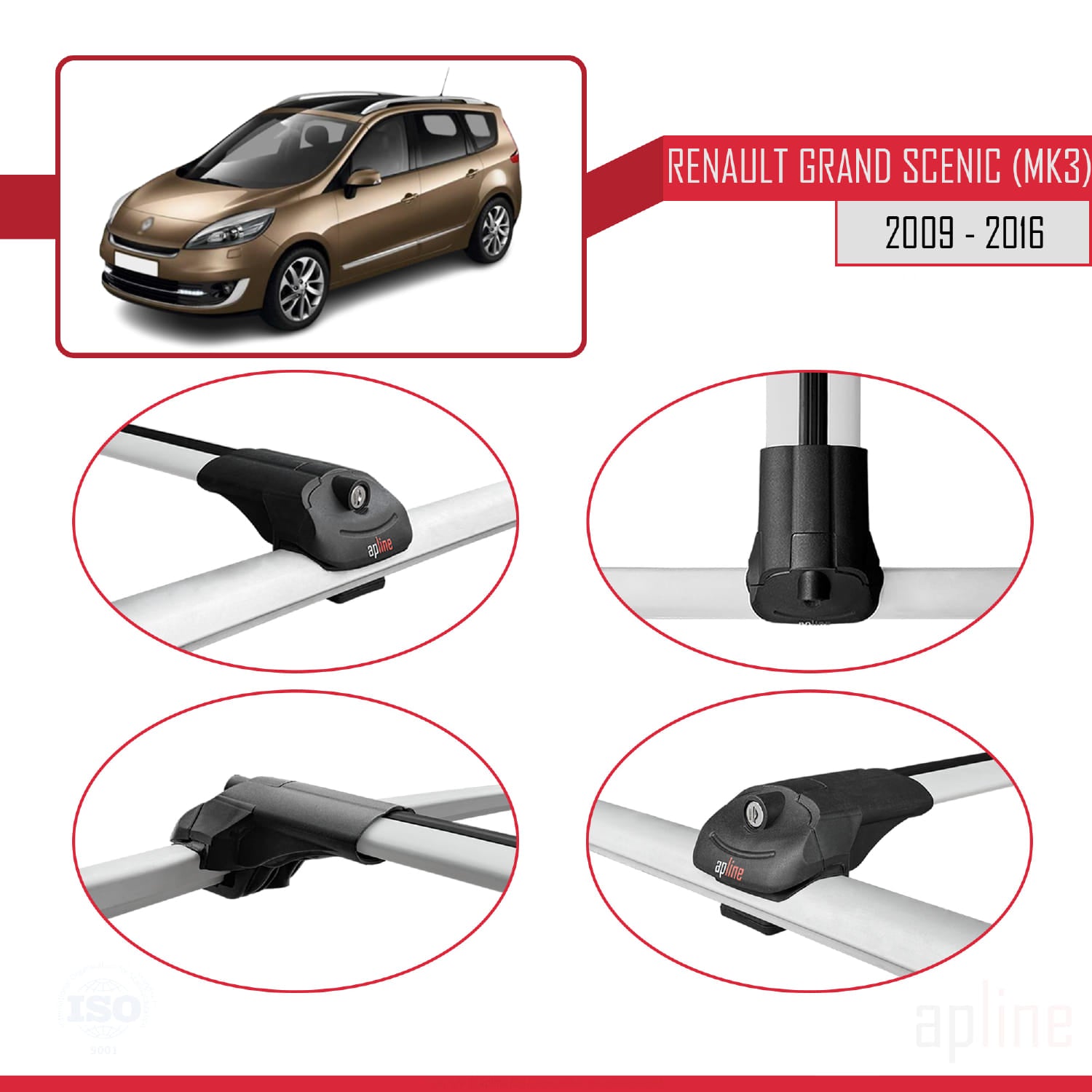 Compatible avec Renault Grand Scenic 3 2009-2016 ACE-1 Barres de Toit Railing Porte-Bagages de Voiture Gris Aluminium 3 Barres