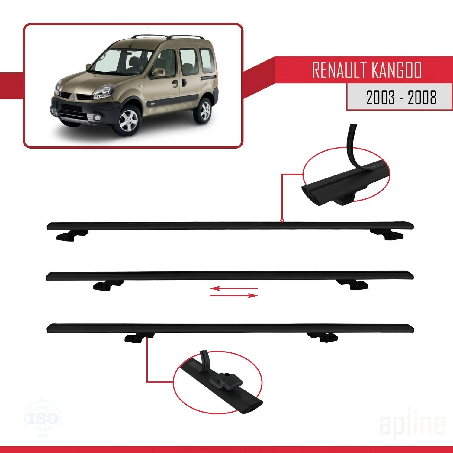 Compatible avec Renault Kangoo (X76) Post-Facelift 2003-2008 BASIC Model Barres de Toit Railing Porte-Bagages de Voiture Noir Aluminium 2 Barres