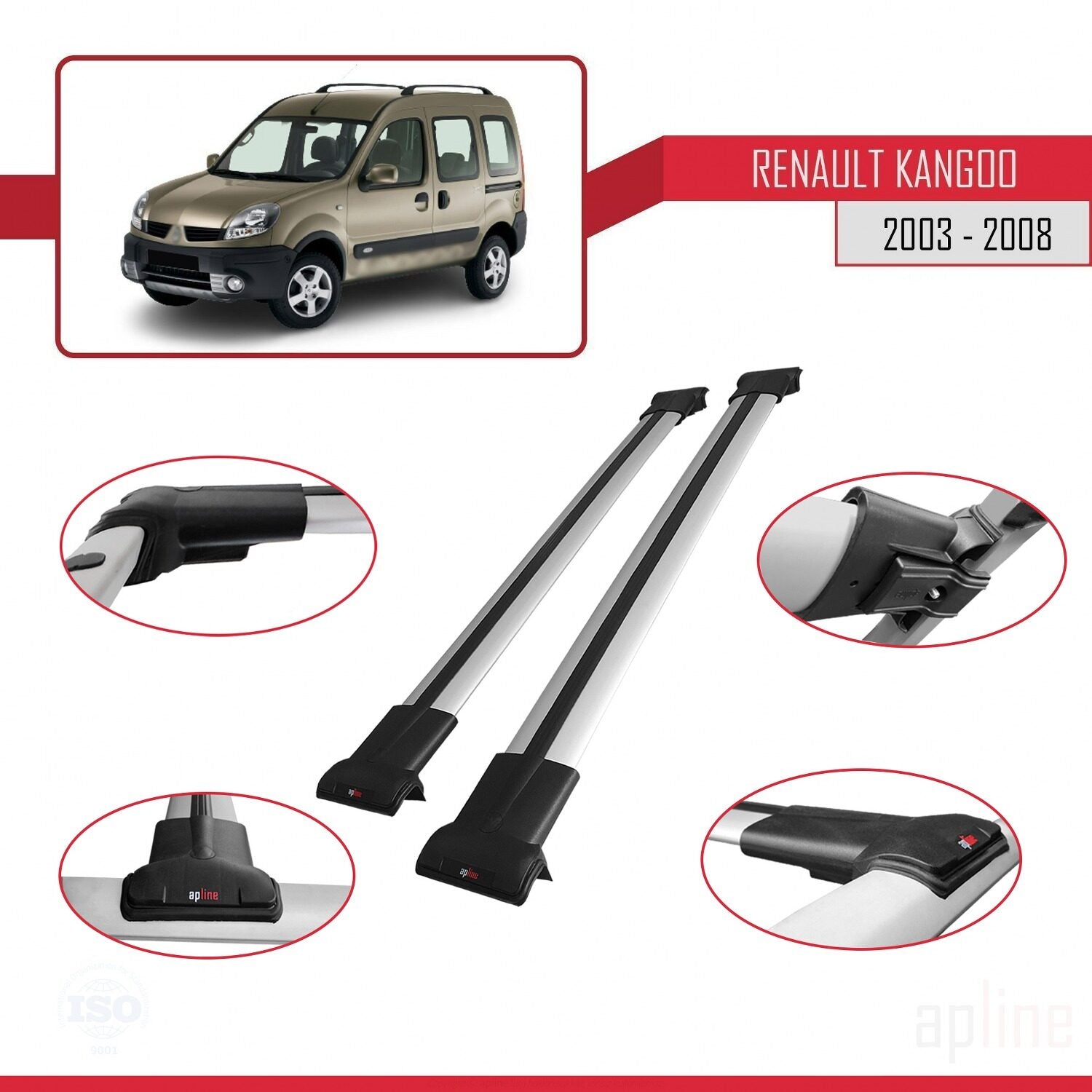 Compatible avec Renault Kangoo (X76) Post-Facelift 2003-2008 FLY Model Barres de Toit Railing Porte-Bagages de Voiture Gris Aluminium 2 Barres