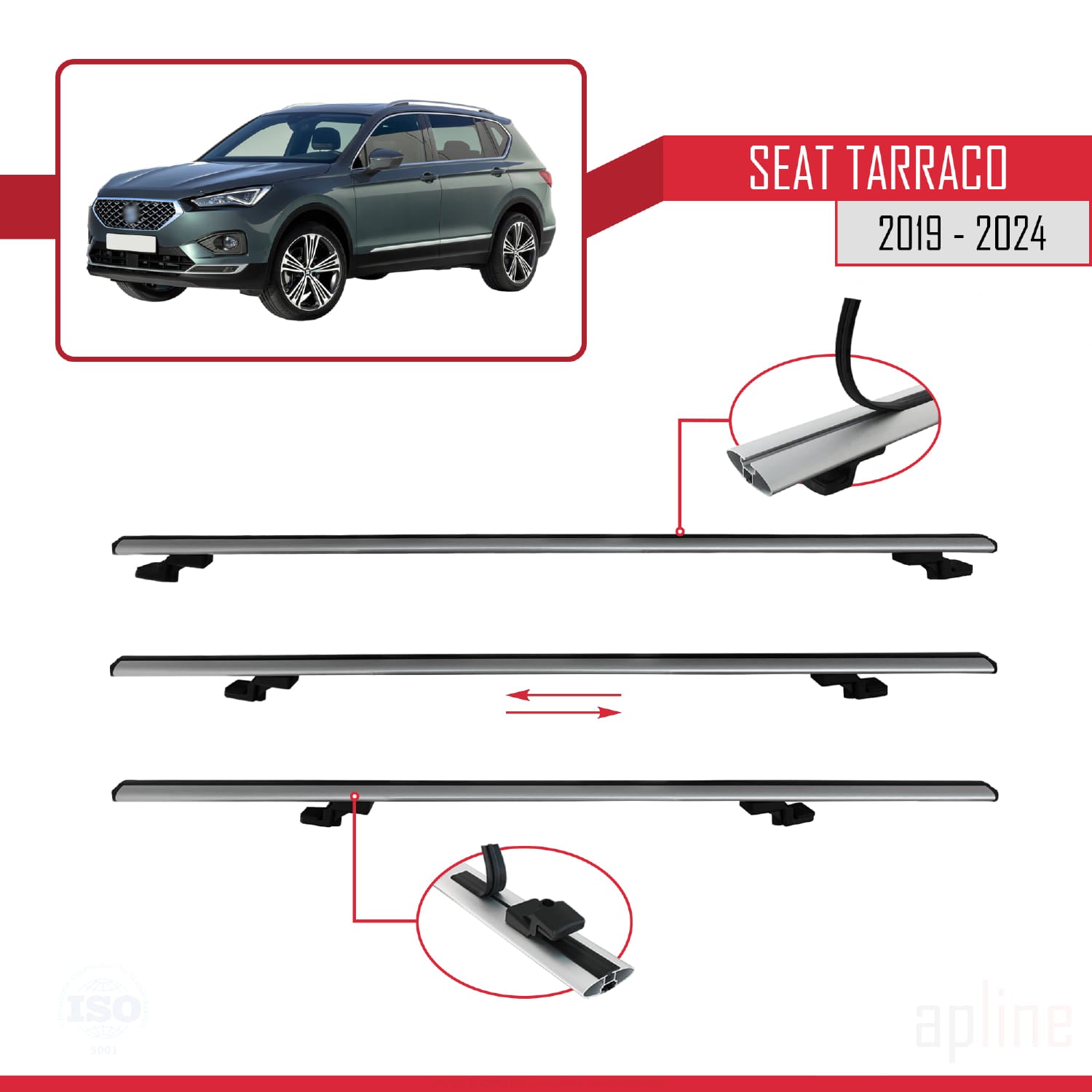 Compatible avec Seat Tarraco 2019-2024 BASIC Model Barres de Toit Railing Porte-Bagages de Voiture Gris Aluminium 2 Barres