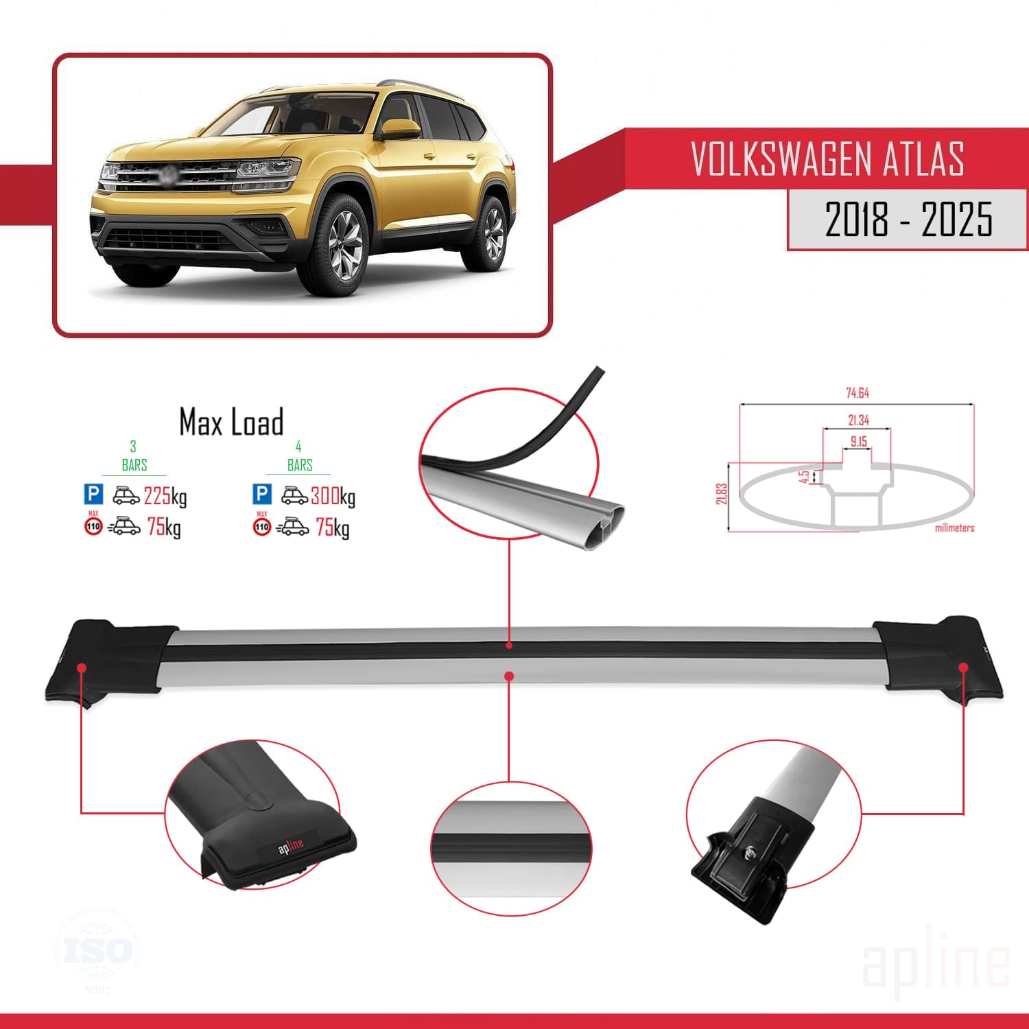 Il est utilisé pour transporter des charges sur votre véhicule. Il est nécessaire pour l'assemblage du porte-vélos, du porte-skis, du coffre de toit, etc. Ce produit se monte sur les barres de toit du véhicule. Ce produit ne peut pas être utilisé dans les véhicules sans barres de toit. Il est compatible avec les modèles présentant un espace entre le toit du véhicule et les barres de toit.