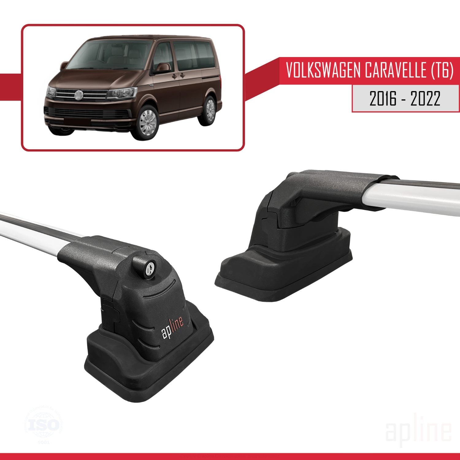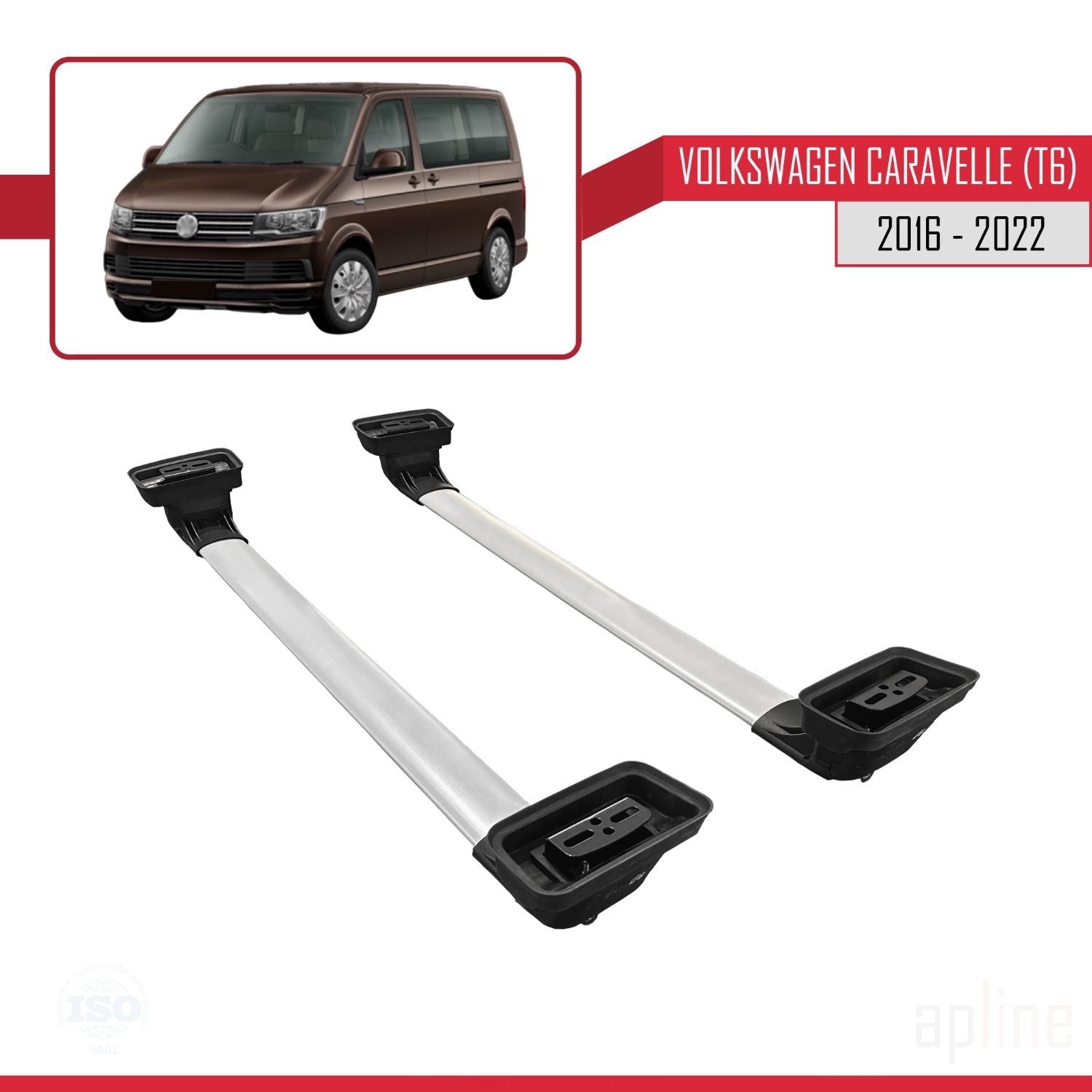 Compatible avec Volkswagen Caravelle (T6) 2016-2022 ACE-3 Barres de Toit Railing Porte-Bagages de Voiture Gris Aluminium 2 Barres