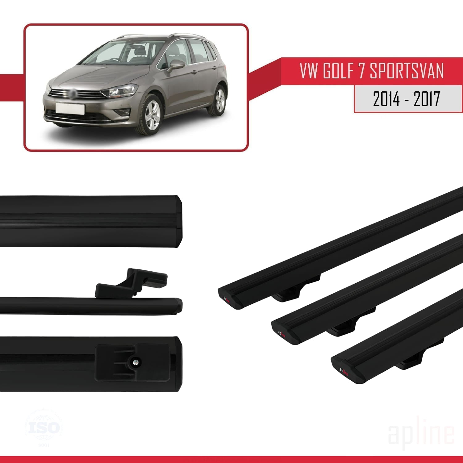 Compatible avec Volkswagen Golf Sportvan 2014-2017 BASIC Model Barres de Toit Railing Porte-Bagages de Voiture Noir Aluminium 3 Barres