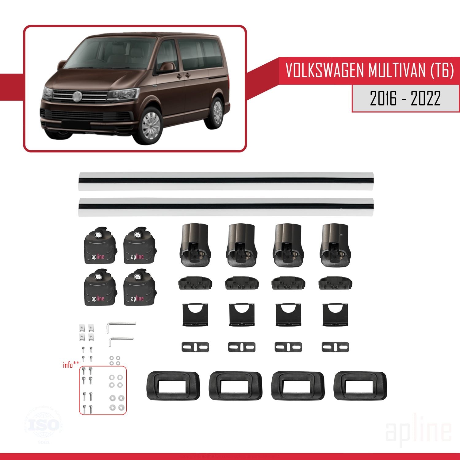 Compatible avec Volkswagen Multivan (T6) 2016-2022 ACE-3 Barres de Toit Railing Porte-Bagages de Voiture Gris Aluminium 2 Barres