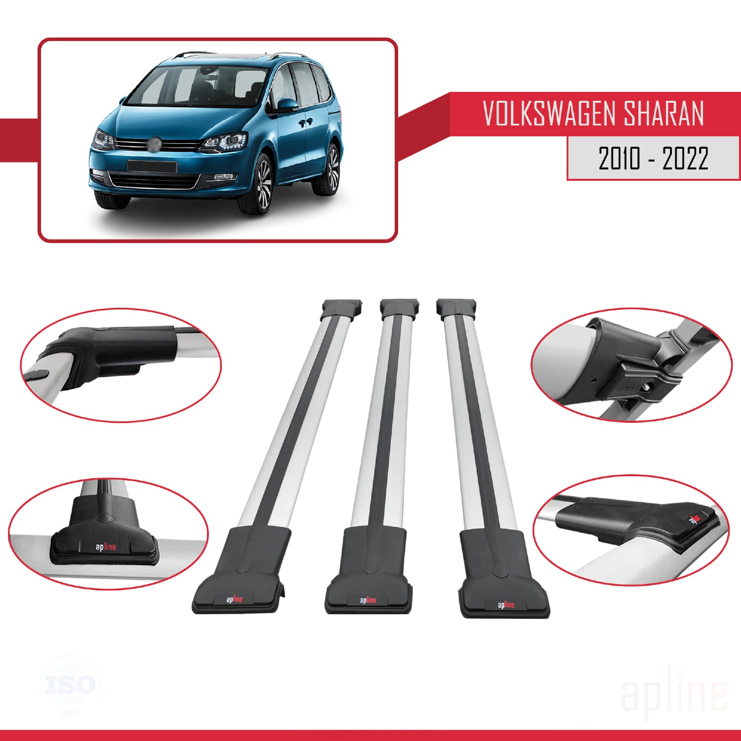 Compatible avec Volkswagen Sharan 2 (7N) 2010-2022 FLY Model Barres de Toit Railing Porte-Bagages de Voiture Gris Aluminium 3 Barres
