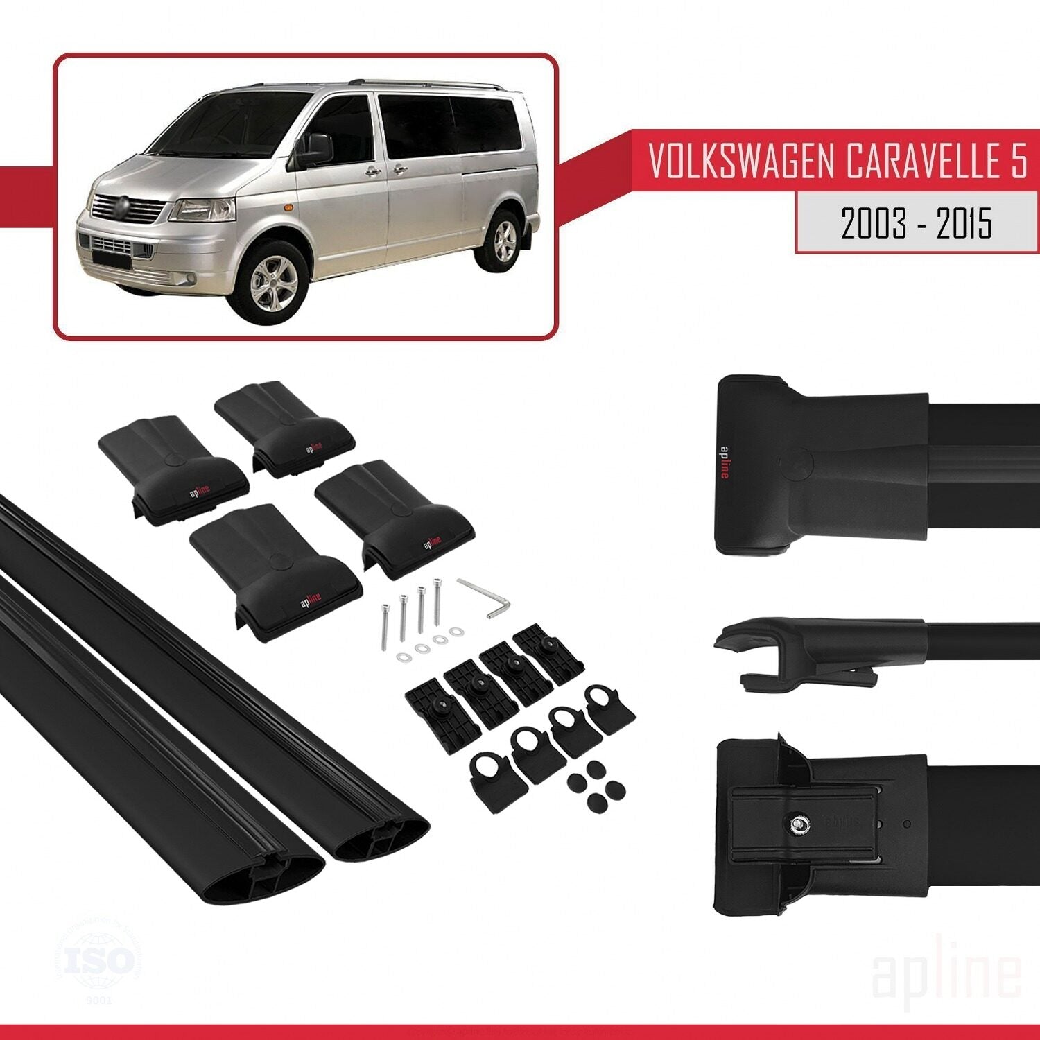Compatible avec Volkswagen T5 Caravelle 2003-2015 FLY Model Barres de Toit Railing Porte-Bagages de Voiture Noir Aluminium 2 Barres