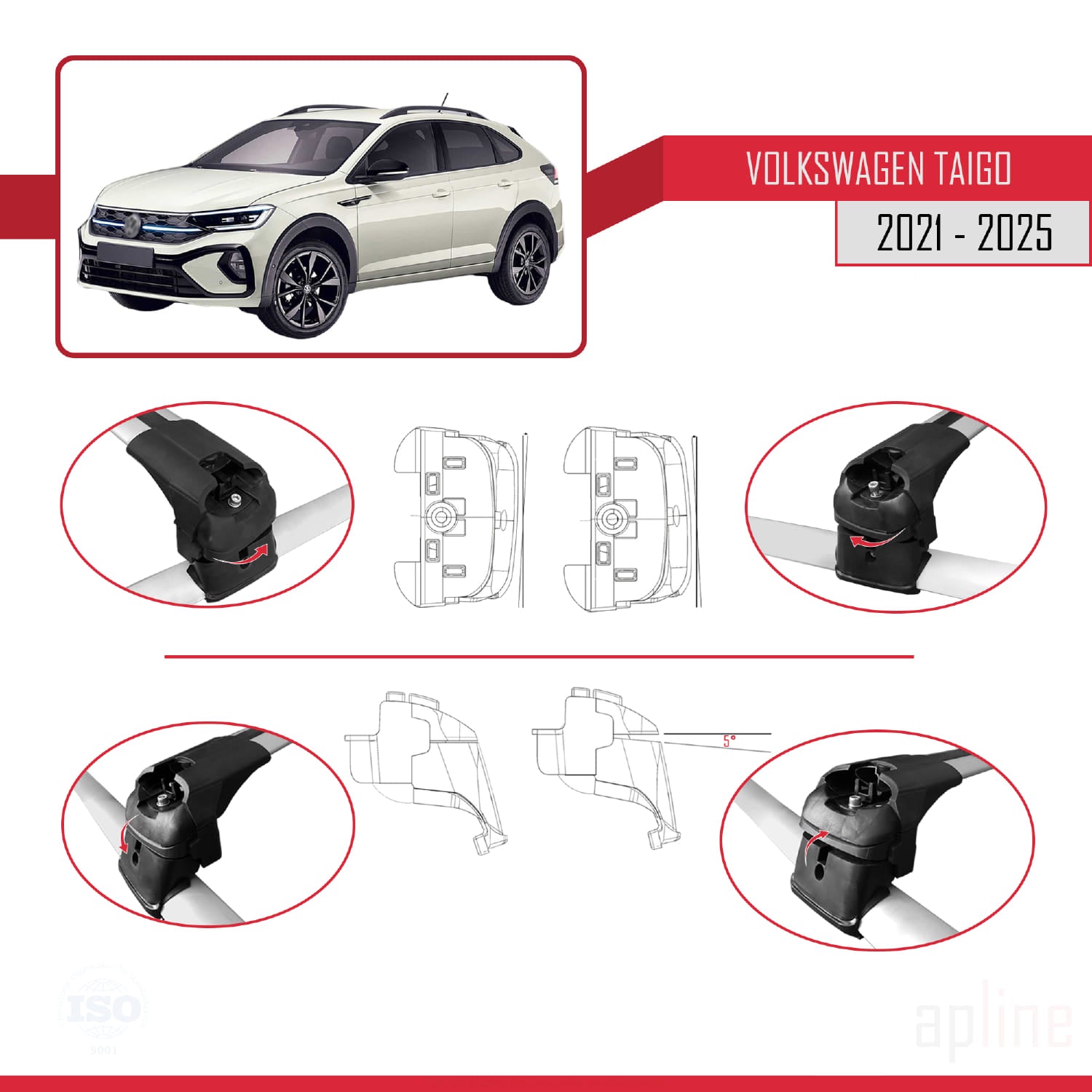 Compatible avec Volkswagen Taigo (CS1) 2021-2025 ACE-2 Barres de Toit Railing Porte-Bagages de Voiture Gris Aluminium 2 Barres
