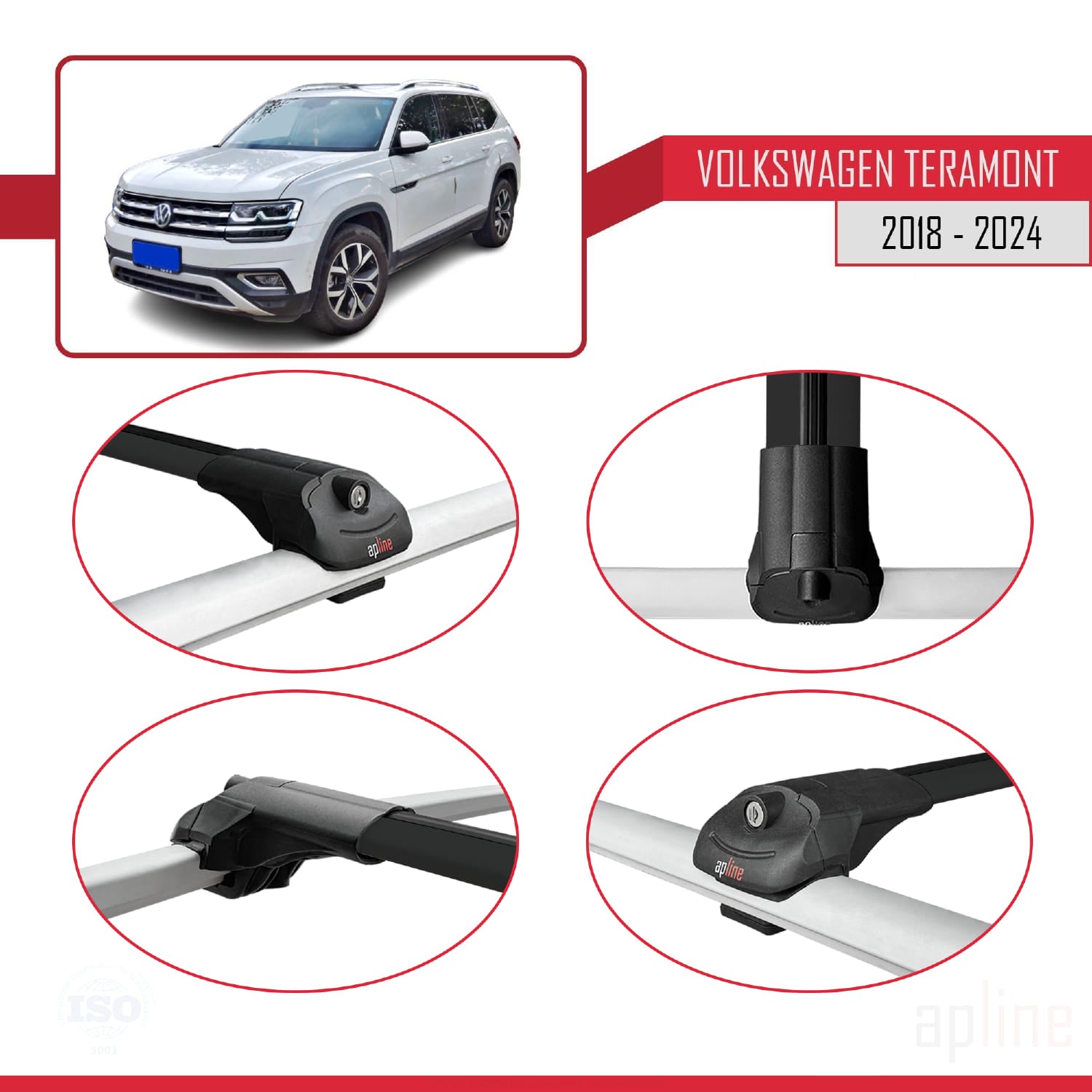 Compatible avec Volkswagen Teramont (CA1) 2018-2024 ACE-1 Barres de Toit Railing Porte-Bagages de Voiture Noir Aluminium 2 Barres
