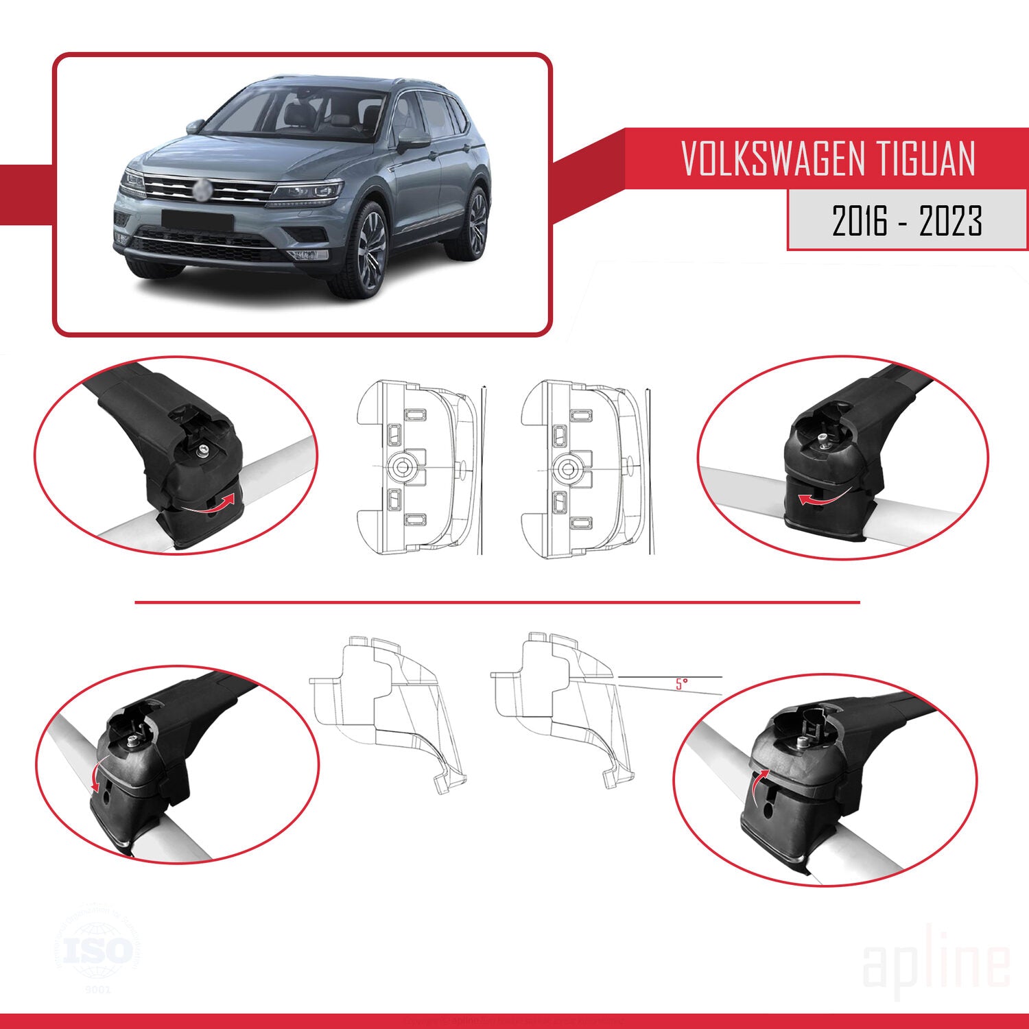 Compatible avec Volkswagen Tiguan 2 (AD1) 2016-2023 ACE-2 Barres de Toit Railing Porte-Bagages de Voiture Noir Aluminium 2 Barres