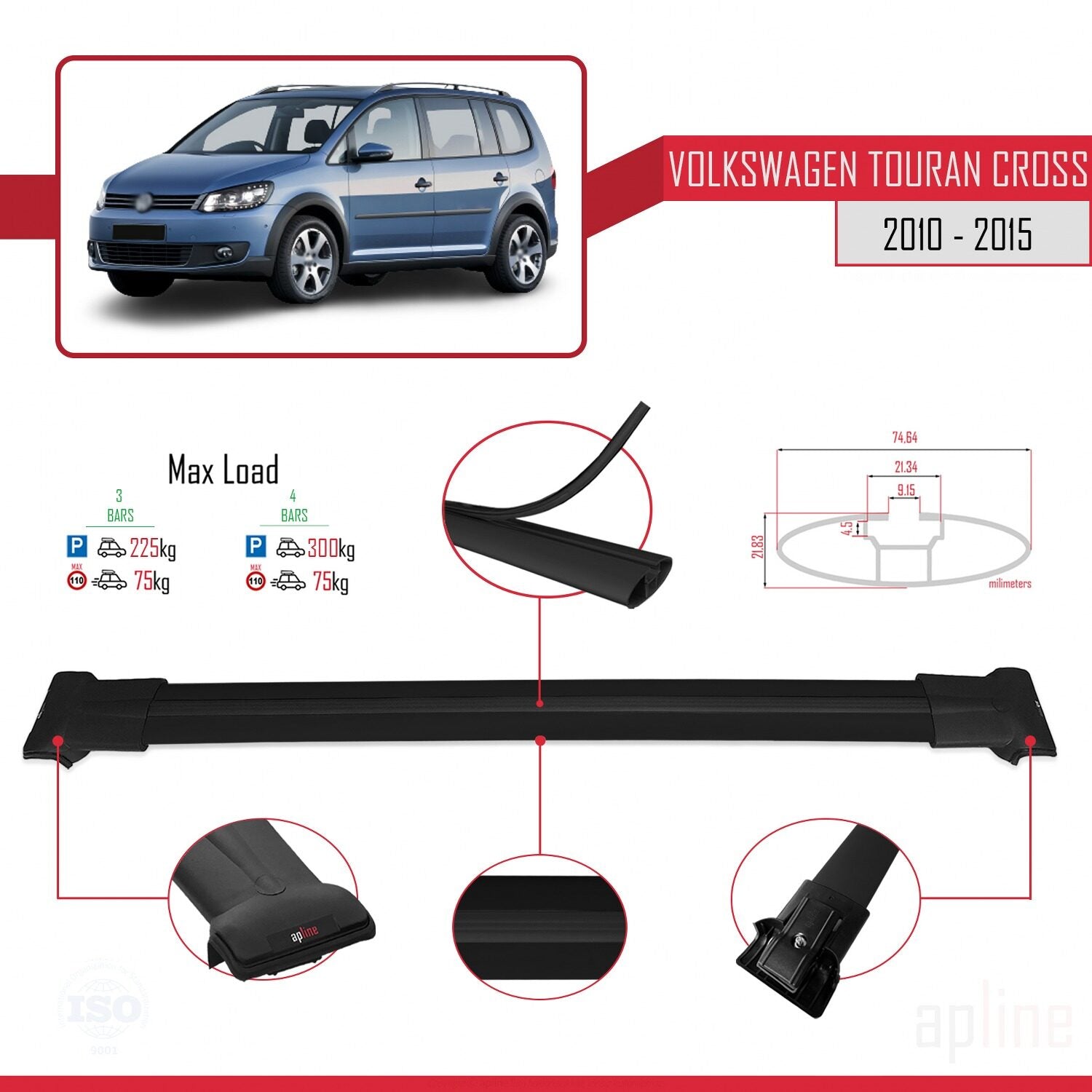 Compatible avec Volkswagen Touran Cross Post-Facelift 2010-2015 FLY Model Barres de Toit Railing Porte-Bagages de Voiture Noir Aluminium 3 Barres