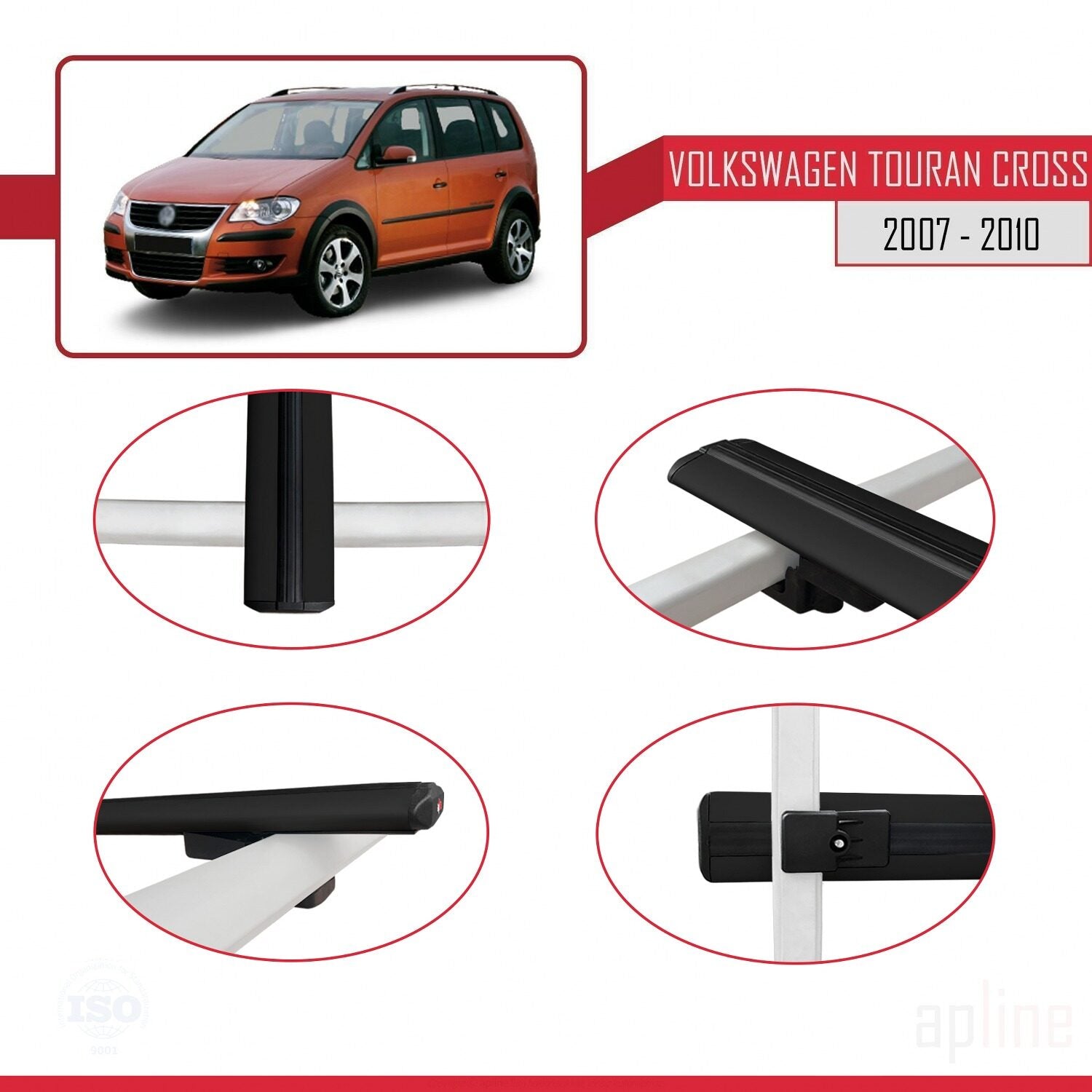 Compatible avec Volkswagen Touran Cross Pre-Facelift 2007-2010 BASIC Model Barres de Toit Railing Porte-Bagages de Voiture Noir Aluminium 2 Barres