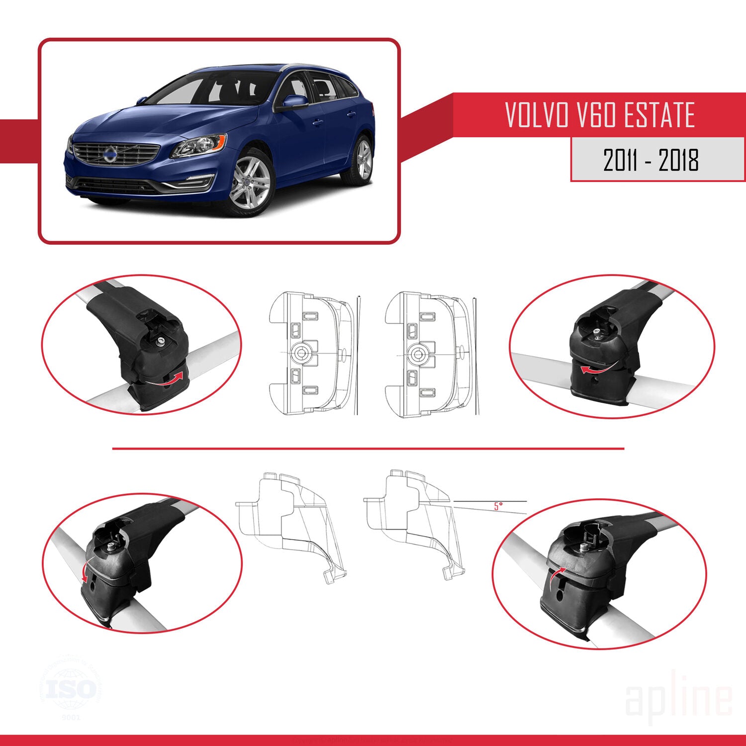Compatible avec Volvo V60 2011-2018 ACE-2 Barres de Toit Railing Porte-Bagages de Voiture Gris Aluminium 2 Barres